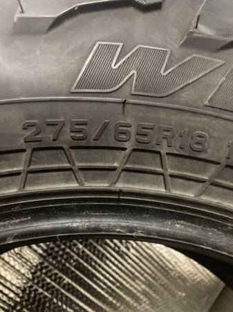 Single full size spare tire Falken Wildpeak A/T AT3W passenger rated for 1/2 ton truck and SUV 275/65/18 with 7/32+ tread life remaining No repairs $75