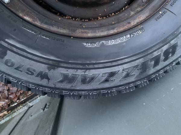 Set of 4 - 215/70R15 98T Bridgestone Blizzak M+S Made in Japan Traces of rust are visible on the steel wheels. The tires are in good condition, sufficient for a couple more winter seasons. Sold all...