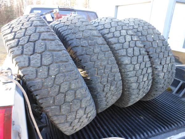I have four studded snow tires that I used on my plow truck for three seasons. Bought anew set for $960.00, but only want $150.00for these used tires. Pick up near Big Lake Napa store. Cash only