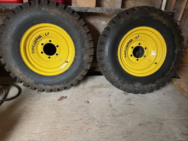 4 set Wolf Paws studded tires, 7-15 LT, 6-log rims, used one winter