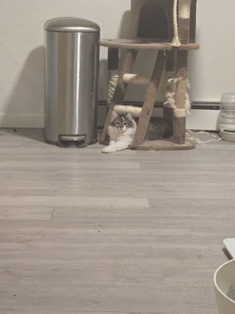 Free to good home, very gentle loving cat, approximately 1and a half, I am barely home, and I feel that need more attention than I can provide.
